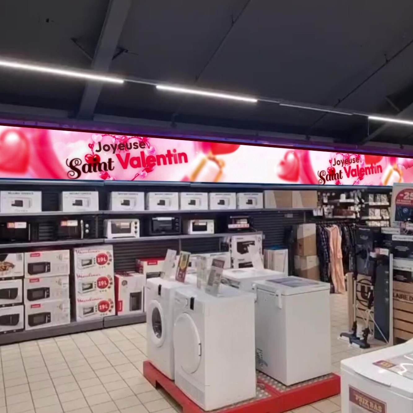 Idéal en zone promo, pour captiver vos clients dès leur entrée dans le magasin.